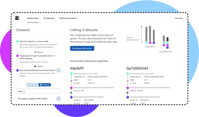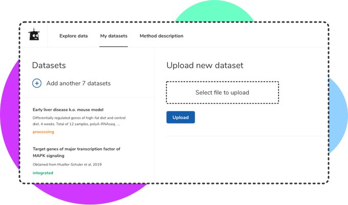 Contextualize with simple steps and start discovering. With a subscription, you will be able to work with all Multiomics data: upload, search, explore, enrich and download with few clicks.